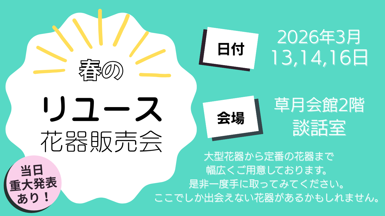 リユース花器入荷や販売会開催などの情報をいち早くお届けいたします!